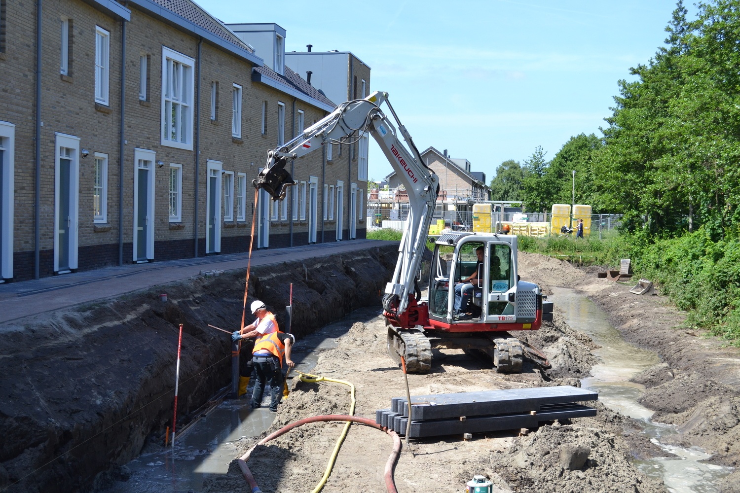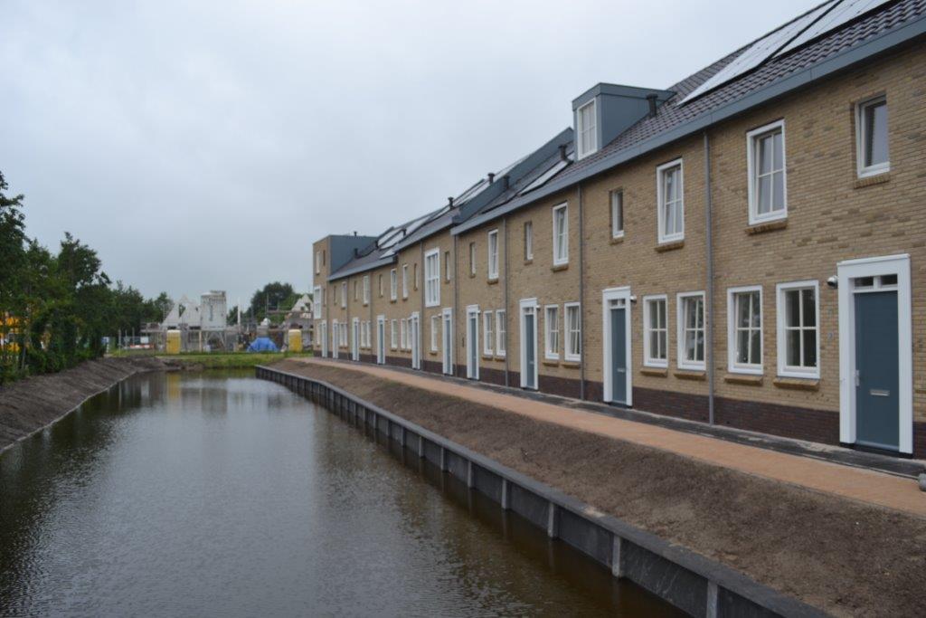 Voor het project Eiland 4 in deelgebied De Bron ging het om ongeveer 300 meter. Het plaatsen van dit type beschoeiing is door Aannemingsbedrijf Smink Infra / Zandink uit Nijkerk met de nodige aandacht en vakmanschap op een prachtige wijze uitgevoerd en staat er keurig bij.